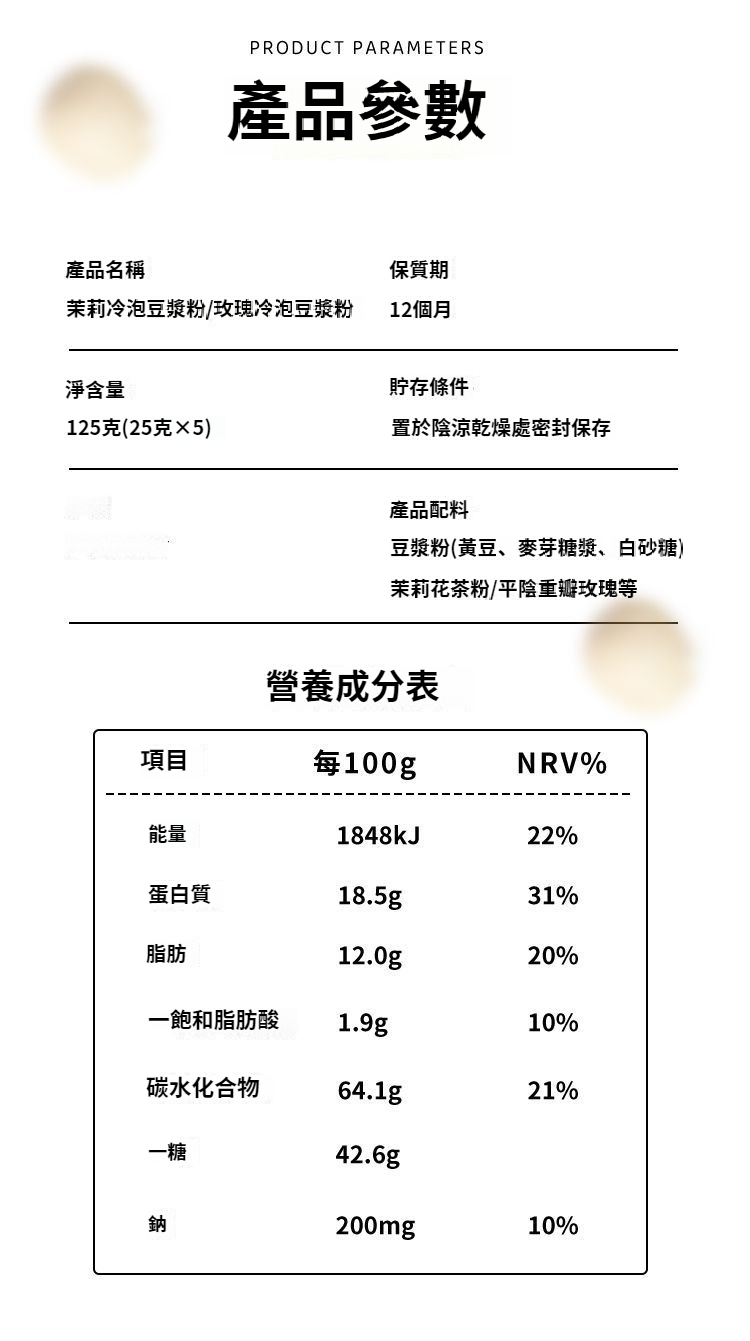 茉莉冷泡豆漿粉125g*3包【15杯】999